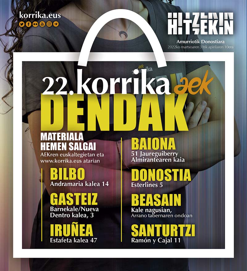 Dagoeneko hainbat lekutan eskura daiteke Korrika arropa. Online dendan eta AEKren euskaltegietan ez ezik, Baiona, Beasain, Bilbo, Donostia, Iruñea, Santurtzi eta Gasteizko dendetan ere (ordutegiak korrika.eus guneko albisteetan daude), non Baionan erakutsitakoa bezalako arropa dagoen. Bernat Etxepare lizeoko desfilera 150 lagun inguru bildu ziren, eta modeloak AEK-ko ikasleak, irakasleak, laguntzaileak eta lizeoko gazteak izan ziren.