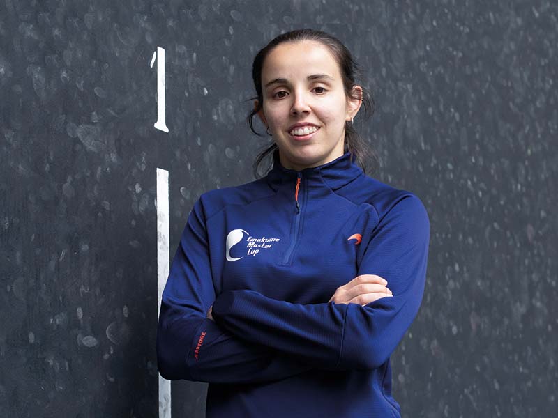 OLATZ ARRIZABALAGA (Gautegiz Arteaga, 1997) Portugaldik itzuli berritan harrapatu dugu, Europako XI. Pilota Txapelketan Euskal Selekzioarekin urrezko hiru domina lortuta. Itxaso Erasunekin batera, Emakume Master Cup 2024 ere irabazi berri du. M. Egimendi. Argazkia: Mikel Martinez de Trespuentes.