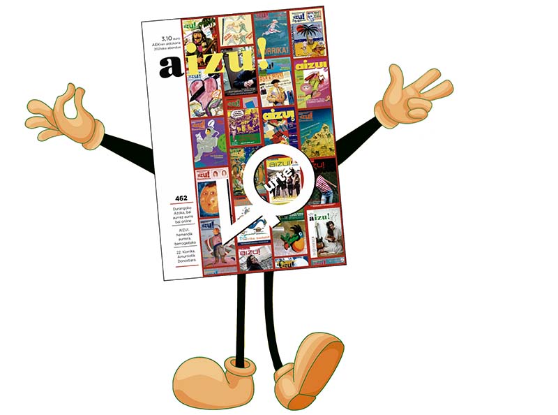 Lantalde osoaren antzera, AIZU!k abenduan beteko duen urtemuga ospatzeko prestaketa lanetan topatu dugu Eñaut Mitxelena (Errenteria, 1976), AIZU! aldizkariaren koordinatzailea. Esku artean duzuen zenbaki berezia eta Durangoko Azokarako mahai-ingurua edota irakurleei eskaini nahi dieten beste zenbait sorpresa prestatzen: “Irakurleak dira gure arnasa, eta 40. urtebetetzean zer edo zer berezia eskaini nahi diegu, jakin arren esker on guztiak gutxi izango direla haiengandik jasotzen dugunarekin alderatuta”. M. Egimendi.
