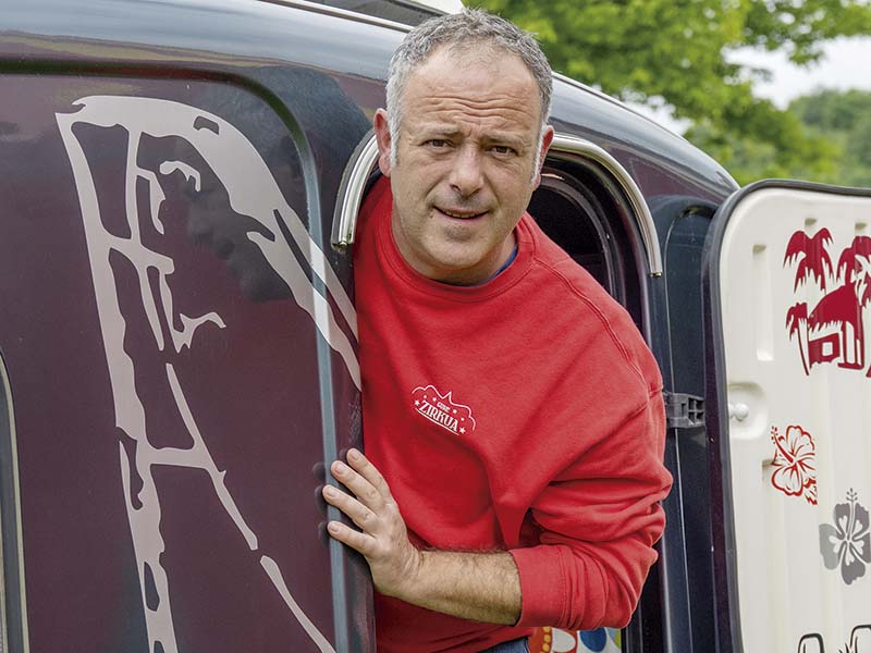 IKER GALARTZA (Amezketa, 1977) aktorea oso ezaguna da antzerkian eta telebistan, baina bera pailazo sentitzen da, batez ere. Hala, Poxpolo moduan alai eta umoretsu ibiltzen da Galartzak sortutako Gure Zirkuan, lehenengo zirku ibiltari euskaldunean. M. Egimendi. Argazkiak: Mikel Martinez de Trespuentes.
