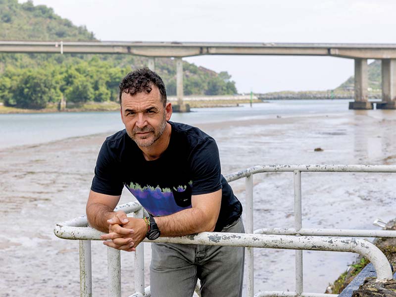 IBON GAZTAÑAZPI ZALDUA (Orio, 1977) ETB1en dabil esatari, estropaden zuzeneko emanaldietan. Bera 22 denboraldiz aritu zen arraunean. Martxoan, dokumental onenaren saria jaso zuen Noidako Nazioarteko Zinema Jaialdian (India), Errio lanagatik. M. Egimendi. Argazkia: Javi Colmenero.
