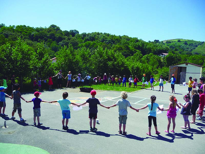 Norbanakoekin eta ingurukoekin konektatzeko eta enpatizatzeko pedagogia eredu berezia. Horixe da Arberoako ikastolaren oinarria. Seaska ikastolen federakuntzako ikastola hau 2008an sortu zen, eta, ordutik, euskarazko irakaskuntza Komunikazio Ez Bortitza (KEB) izeneko ereduarekin uztartu du. Helburua? Haurrek beren sentimenduen gaineko ezagutza garatzea, liskarrak konpontzeko bide eraginkorrak proposatzea eta, azken finean, kalitatezko harremanak egituratzen ikastea. Inhar Iraizotz. Argazkiak: Inhar Iraizotz.
