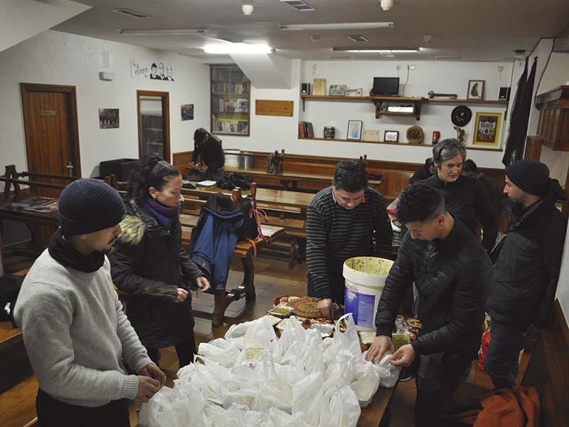 Banaketari dagokionez, Egiako afarien prestaketa Gros auzoko Marruma elkartean egiten dute arratsaldero. Pertsona bakoitzaren errazioa prestatzen dute: eguneko janaria, ogia, postrea, ahozapia eta mahai tresnak. Iluntzean, 20:30ak aldera Kalkutako Teresa plazako trenbide azpira hurbiltzen direnerako, kalean bizi diren pertsonak zain izaten dituzte, eta ilara berehala osatzen dute afaria jasotzeko. Haiekin sortzen diren harreman motak askotarikoak dira. “Batzuekin, ia ez dago harremanik; beste batzuekin, harreman estuak sortzen dira; eta zenbait poltsak prestatzera ere etortzen dira. Batzuk jada ez dira etortzen, logelaren edo aukeraren bat lortu dutelako. Pozgarria izaten da horren berri izatea”.