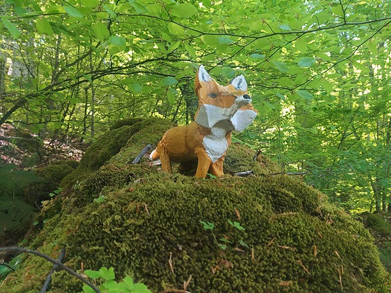 Aitor Gorospe (Agurain, 1969) mendizaleak duela bospasei urte berreskuratu zuen Aguraingo fraideek antzina Haranako bailarara igotzeko erabiltzen zuten bidezidorra. Horrekin aski ez eta ibilbidean zehar euskal mitologiako pertsonaiak irudikatzen dituzten taillak ezarri eta ezarri ari da ordutik, gero eta ikusmira handiagoa eragiten dutenak. Bisitarien kopurua hazi egin da, eta orain pertsonaien gaineko informazioa txertatzen dihardu, eskuz zein QR kodeak gehituta. Amaia Gartzia Payo. Argazkia: Amaia Gartzia Payo.