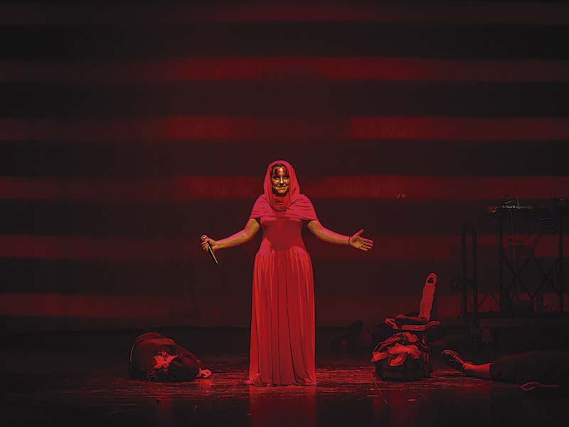 Gure kultura erdigunean jarri, irauli eta bestelako mundu utopikoa proposatzen du Badon* proiektuak, diziplinarteko ikuskizun baten bitartez. Korrika-AEK kultur sorkuntza beka jaso zuen 2022an, eta dagoeneko hasia da Euskal Herriko antzokietan aurkezten. Esti Lanao. Argazkia: Asier Arroita.