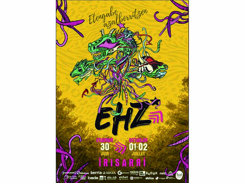 EHZ Euskal Herria Zuzenean Festibala ekainaren 30etik uztailaren 2ra arteko asteburuan ospatuko da, Irisarrin. Ohi bezala, era askotako tailerrak, animazioak eta ikusgarriak izango dira bertan. Eta, nola ez, kontzertuak. Aurtengo edizioan, besteak beste, Liher, Gatibu, Aho Zakil Konekxion, Vapa, Kuma No Motor, Arima, Afrika Bibang, Akts, Muare, Kristonak, Belako, Kolinga, Ada Oda, Mandarine, Soulfly, Madmadmad, Willis Drummond, Habia eta Mice. Sarrerak dagoeneko salgai dira www.ehz.eus atarian.