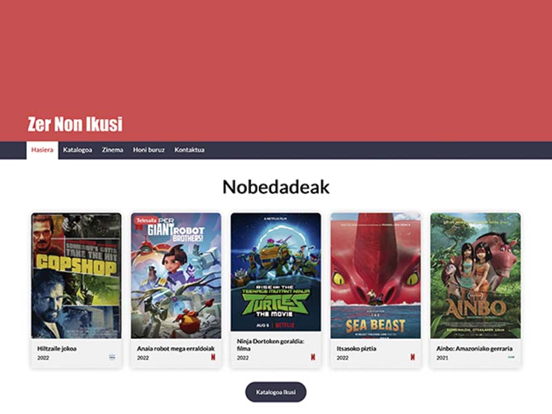 INTERNETEKO plataformetako euskarazko ikus-entzunezkoak aurkitzeko asmoz sortu dute Zer Non Ikusi webgunea: zernonikusi.eus. Interneteko doako zein ordainpeko plataformetan euskarazko audioekin ikus daitezkeen lanak jasotzen ditu. Era berean, zinema aretoetan ikus daitezkeenak zerrendatzen dituzte. Oraingoz, 135 lan jaso ditu webguneak, baina katalogoa osatzen jarraituko dute. Gainera, aurrerago, euskarazko azpitituluak dituzten edukiak ere jasotzeko asmoa dute webgunearen sortzaileek.