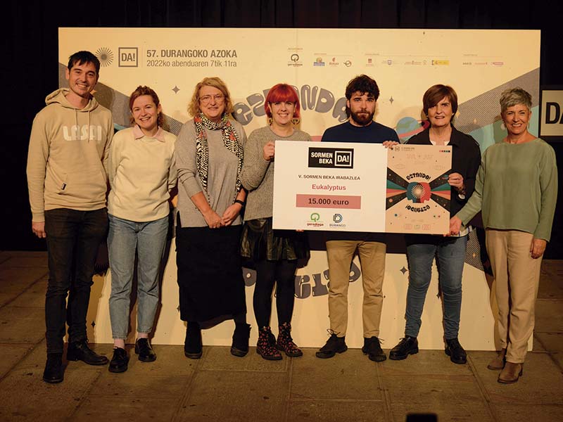 Jon Ander Urresti aktore bermeotarrak irabazi du Durangoko Azokako V. Sormen Beka, Eucalyptus izeneko proiektuarekin. Lana 2023ko Azokan aurkeztu beharko du, eta, horretarako, 15.000 euroko laguntza jasoko du. Urrestik sortuko duen laneko protagonistak eukaliptoak izango dira. Eukaliptoa aitzakia gisa hartuta, “gure lurren eta bizitzen kudeaketari buruz” hausnartuko du. Eukaliptoa eta haren hedatzea metafora moduan erabiliz, gaur egun bizi-bizirik diren hainbat gairen gaineko gogoeta egingo du: monolaborantza, faxismoa, gizartearen egungo kezkak eta erronkak... Beka banatzeko epaimahaiak nabarmendu duenez, “proiektuak, lehenengo kolpean, ezustea, ezinegona eta harridura sortu zigun, eta planteamenduak guregan sortu duen mugimendu hori publikoarengan ere sor lezakeelakoan gaude. Funtsean, gaiaren originaltasunak arrastoa utzi digu”. Azken emaitza, urtebete barru izanen da ikusgai.