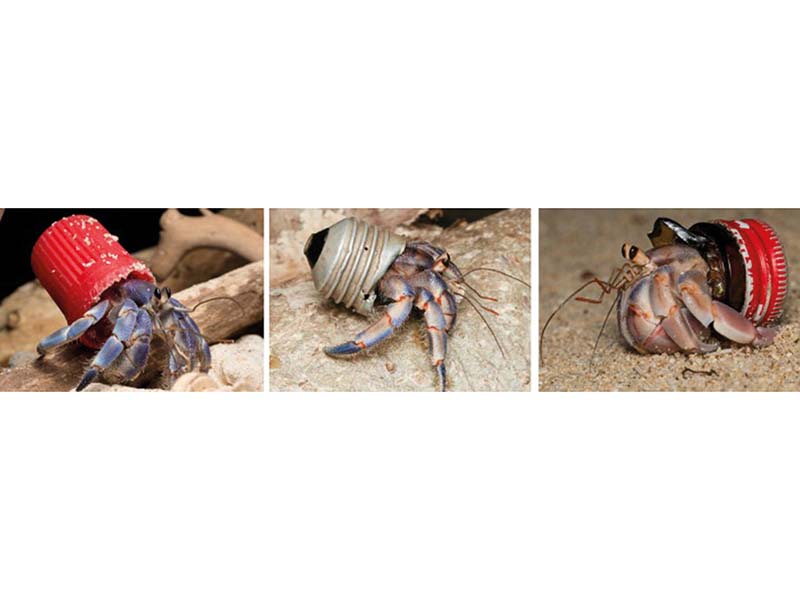 Plastikozko hondakinak, ermitau karramarroen etxe