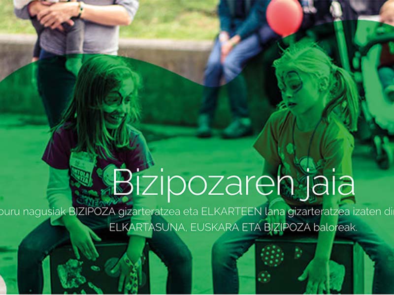 Euskara, elkartasuna, bizipoza eta auzolana. Bizipoza elkartearen oinarri horiek guztiek lekua izango dute Bizipozaren Jaian, apirilaren 27an, Hernanin. Euskal Herri osoko 38 elkartek osatzen dute Bizipoza elkartea. Denek ere izaera bereziko gaiak lantzen dituzte, eta haur eta familiek osatzen dituzte. Hain zuzen, “denona eta denontzat” izan beharko lukeen gizarte inklusiboa eraikitzea da Bizipozaren helburua, euskaratik eta euskaraz. Bada, jaia helburu horien guztien bilgune izango da. Egun osoan, herriko hainbat eremu hartuko ditu. Egitaraua guztiz zehaztua ez badute ere, “potoloa” izango da, antolatzaileen hitzetan. Esaterako, hainbat gune izango dira: elkarteena, ikuskizunena, tailerrena... Ikuskizunei dagokienez, Ttarla dantza taldeko kideak, Porrotx eta Marimotots, Hernaniko Herburu erraldoi eta buruhandien konpartsa... izango dira, besteak beste. Parte hartzera ez ezik, laguntzera ere hurbil daiteke hala nahi duena. Izan ere, boluntarioak behar dituzte. Interesa duenak