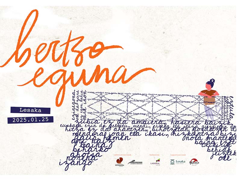 Urtea hasteaz batera iritsiko da bertsozaleen urteroko hitzordu nagusietakoa: Bertso Eguna. Azken urteotan bezala, lurraldez aldatuko da aurten, eta Lesaka izango dute bilgune bertsozaleek. Urtarrilaren 25erako, egun osoko plana antolatu dute Bertsozale Elkarteak eta Bortzirietako Bertso Eskolak. Eguna 10:00etan hasiko dute, Oinak Bidean ibilbidea egiteko. Ondoren, bertso-poteoa izango da, eta hainbat bertso eskolatako kidek abestuko dute. Arranon 14:30ean luntxa egin ostean, arratsaldean XXI mende, 25 (H)illbeltz bertso saioa eskainiko dute Harriondoa Kultur Etxean. Alaitz Rekondo gai jartzaile dutela, Alaia Martin, Amets Arzallus, Julio Soto, Maddi Ane Txoperena, Nerea Ibarzabal eta Peru Abarrategi ariko dira bertsotan. Saio ostean, festa giroa: 20:30etik aurrera afaria sagardotegian eta, afalostean, Manex Pagola eta Hor gu-ren bertso jarriak. Azkenik, DJa egongo da Arranon. Arratsaldeko saiorako zein afarirako sarrerak bertsosarrerak.eus atarian ipini zituzten salgai abenduaren 16an; beraz, interesa izanez gero, bizkor ibili!