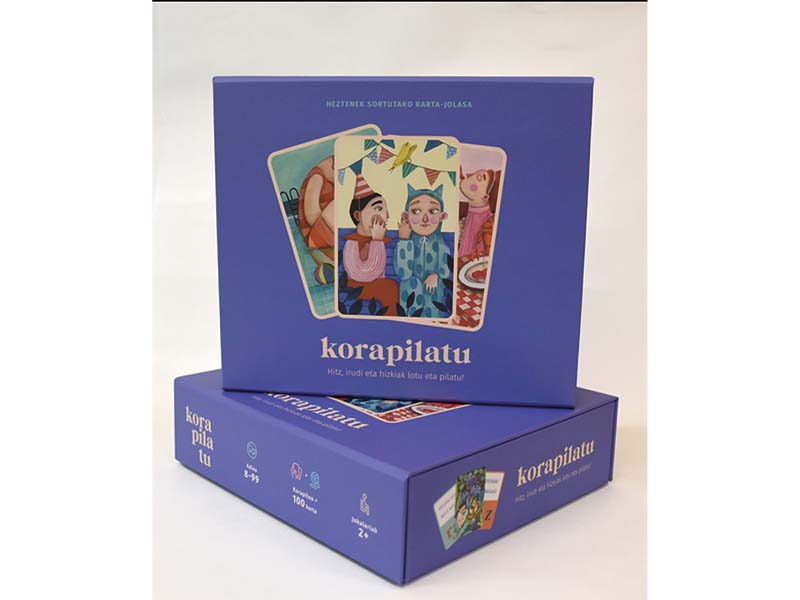Haur eta helduen aisialdia euskaldunagoa izan dadin, Korapilatu izeneko karta jokoa sortu du Hezten elkarteak. Leloak argi erakusten ditu Korapilatu-ren nondik norakoak: Hitz, irudi eta hizkiak lotu eta pilatu! Hizkiak, hitzak eta irudiak dituzten kartak dira jokoaren oinarria. Kartak eta irudimena baliatuta, hitzen eta irudien loturak egin behar dituzte parte hartzaileek: hitz-hitz, irudi-irudi edo irudi-hitz. Horretarako, hiru jolas proposatzen dituzte egileek. Karta jolasak hainbat helburu ditu: euskaraz ahozkotasuna lantzea; aisialdian euskaraz jolastera bultzatzeko tresna eskaintzea; jolasaren bitartez irudimena eta sormena lantzea; eta talde lana eta harremanak jorratzea. Eta, jakina, edozein adinetan jolastuz ongi pasatzea. Mahai jolasa Hezten elkartearen webgunean eros daiteke: hezten.eus.