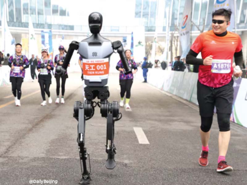 Apirilaren 13an, Beijingen (Txina), robot humanoideak giza korrikalarien aurka lehiatuko dira maratoi erdi batean. Hogei enpresa teknologiko eta ikerketa erakunde baino gehiago izango dira bertan, eta 12.000 korrikalarik eta dozena bat makinak hartuko dute parte. Robotek baldintza jakin batzuk bete beharko dituzte: 45 zentimetro eta 2 metro arteko altuera, korrika egiteko edo ibiltzeko aukera emango dien egitura mekanikoa, ezingo dute gurpilik erabili eta erabat autonomoak izan beharko dute; ondorioz, jabeek urrunetik kontrolatu beharko dituzte. Hori bai, araudiak aukera ematen die roboten arduradunei makinaren bateria aldatzeko, behar izanez gero. Giza korrikalariek, aldiz, inolako laguntza teknologikorik gabe egin beharko dituzte 21 kilometroak. Nork irabaziko ote du, giharrak ala mikrotxipak? Egin apustu!