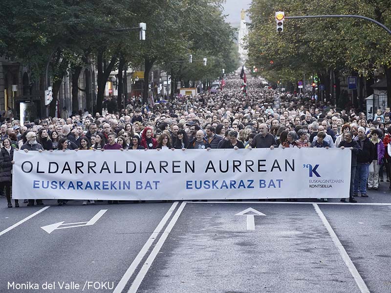 Euskalgintzaren Kontseiluak deituta, azaroaren 4an dozenaka mila pertsona batu ziren Bilboko kaleetan euskara biziberritzearen aurkako epaiak salatzeko. Manifestazio oso jendetsua izan zen, eta jendeak Kontseiluaren aurreikuspenen gainetik erantzun zuen, Kontseiluko idazkari nagusi Idurre Eskisabelek aitortu zuenez. Manifestazioaren balorazio positiboa egiteaz gain, euskararen normalizazioan aurrera egiteko “itun soziopolitikoaren premia” nabarmendu zuen Eskisabelek. Era berean, euskararen normalizazioa jasaten ari den oldarraldiari erantzuteko tresna aurkeztu du Kontseiluak: Oldarraldiaren aurrean hizkuntza-eskubideak babesteko protokoloa. Azken hilabeteotan, euskalgintzako eta hainbat sektoretako eragileekin garatu du, oldarraldiari tokian tokitik eta bat eginda erantzuteko. Helbide honetan dago eskuragarri: www.kontseilua.eus/protokoloa.